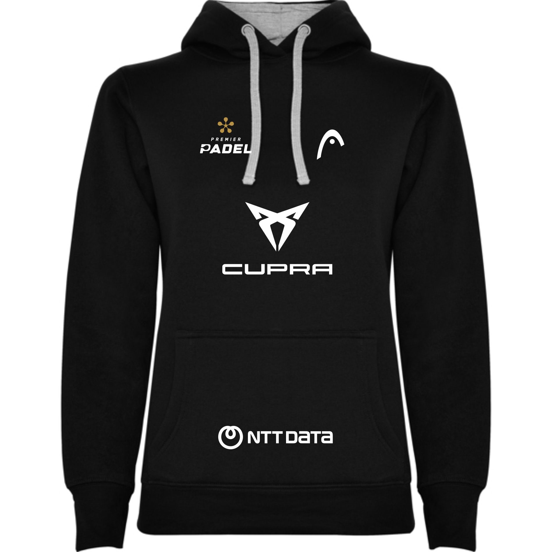 Sudadera con capucha forrada y puños y cinturilla en canalé 1×1 con elastano para un ajuste cómodo y resistente. Incorpora apertura en los puños para el pulgar, ofreciendo mayor comodidad y sujeción. Presenta cubrecosturas del mismo tejido y cordón plano en la capucha. Disponible en varios colores, algunos con capucha a contraste y ojales metálicos al tono que aportan un acabado moderno y de calidad.